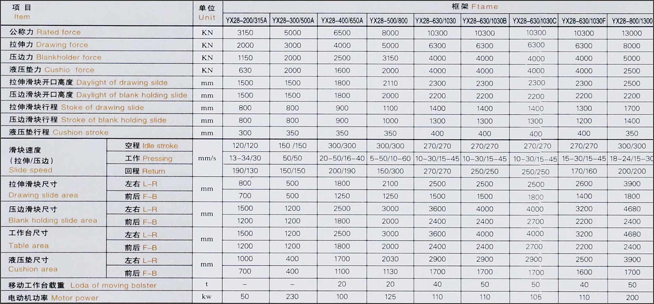 | 移動(dòng)工作臺(tái) | 沖裁緩沖裝置 | 壓邊滑塊,液壓墊死角分別調(diào)壓裝置(拉伸不對(duì)稱零件) | 光電保護(hù)裝置 | 換模用浮動(dòng)導(dǎo)軌和滾動(dòng)托架 |